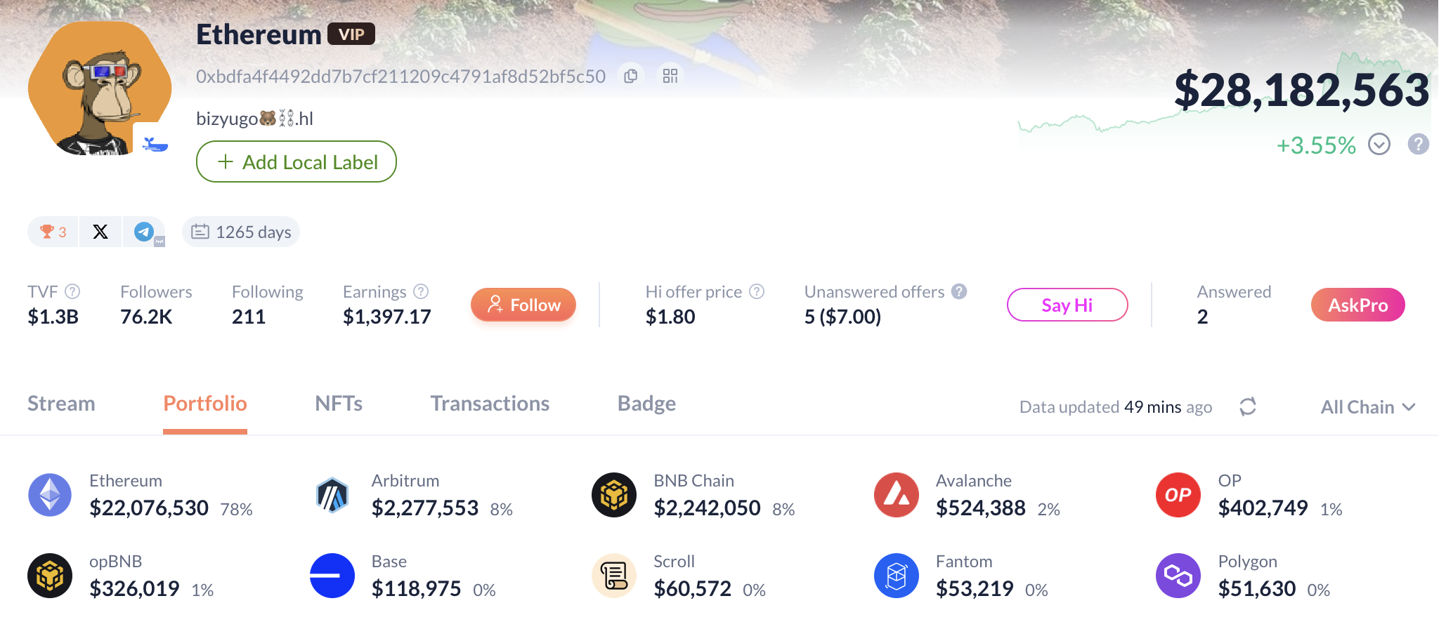 Bizyugo is a prominent DeFi farmer, managing a wallet that ranks among the top in the space. Currently, it holds 5th place on DeBank and 3rd on DegenScore. This wallet has been active for an extended period, with a diverse range of positions spanning across the DeFi ecosystem. Its portfolio is particularly notable for its breadth, consisting of 78 protocols, 12 chains, and 135 assets. In this post, we use our internal tool, Nebula, to dive into Bizyugo's portfolio and uncover potential inefficiencies.